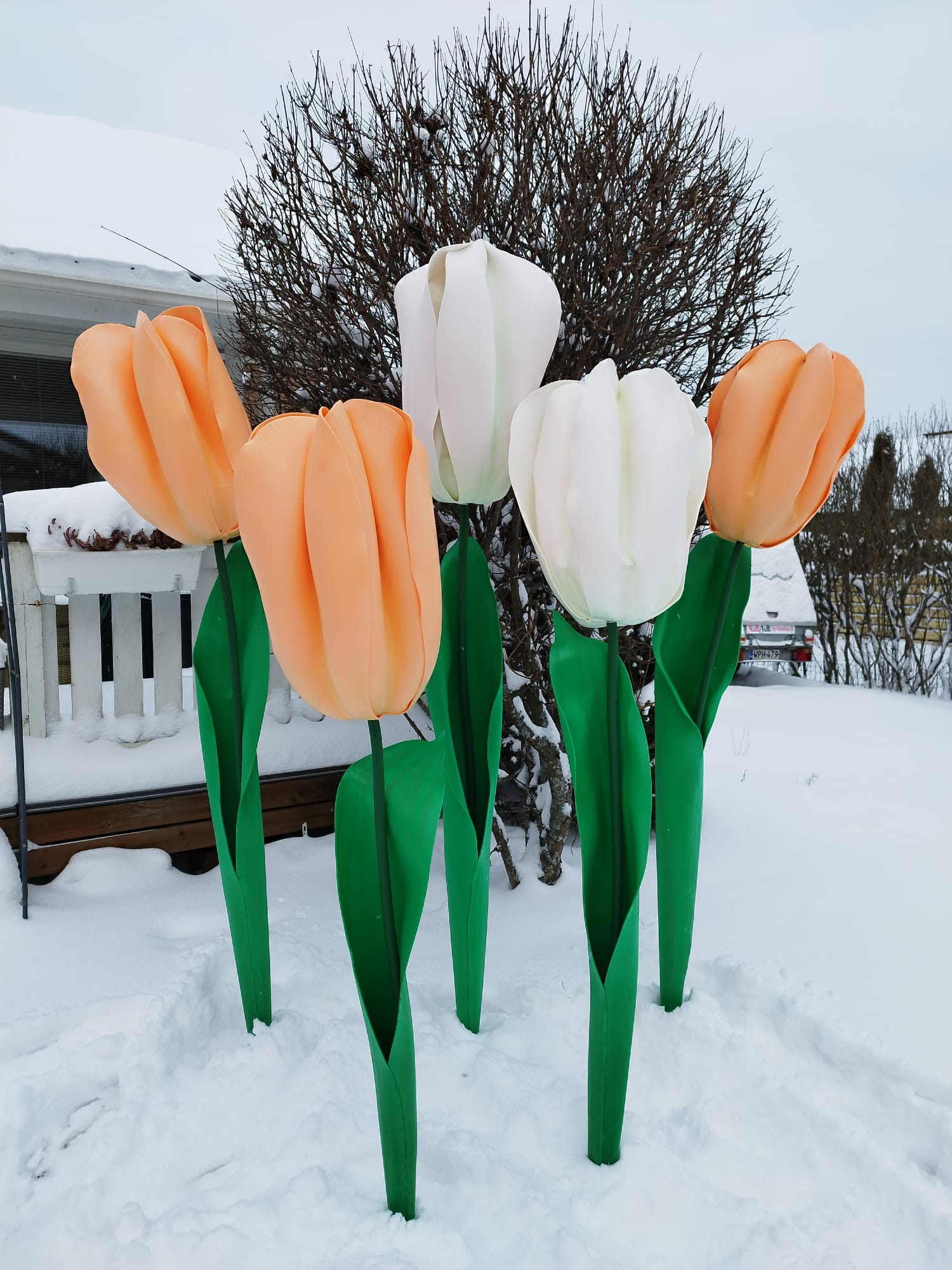 Jättikukat valmistetaan käsin Suomessa. Materiaali on säänkestävää ja sopii ulko- sekä sisäkäyttöön. Saatavana on tilauksesta eri kokoja sekä värejä. Jättikukka on pitkäaikainen sijoitus joka ei kärsi  kuivuudesta eikä vaadi huolenpitoa. Kukan varsi on muotoiltavissa haluamaasi muotoon. Tanniina – design jättkukat ja myös 3-D jättikukkataulut nyt vuokrauspalvelustamme. Huomaa, että Jättikukkien toimitus ei sisälly hintaan.